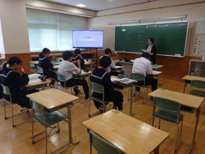 期末評価の解説を聞き、間違えた問題を理解し直しています。教科担任から「よくできていました!次も頑張ろう!」と温かい声掛けがありました。