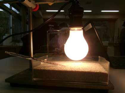 大陸と海の暖まりやすさの違いについて学習しました。熱心に実験に取り組んでいました。