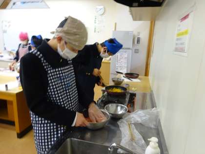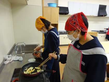 調理実習でハンバーグをつくりました。全員、最後まで真剣に取り組みました。