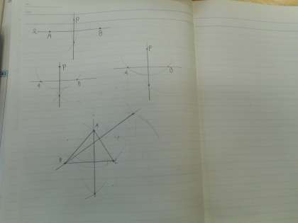 本日の学習は、「基本の作図」です。昨日は、直線Lに対しての垂線を求めました。本日は、三角形ABCにおいて、頂点Aから辺BCへの垂線を2つの方法で求めます。