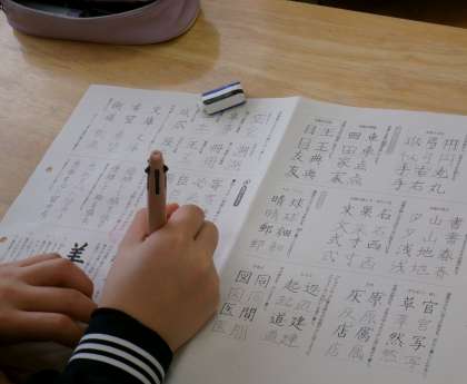本日は、硬筆の学習です。楷書と行書の違いを理解し、書き分けることが課題です。課題を意識し、丁寧に書きました。