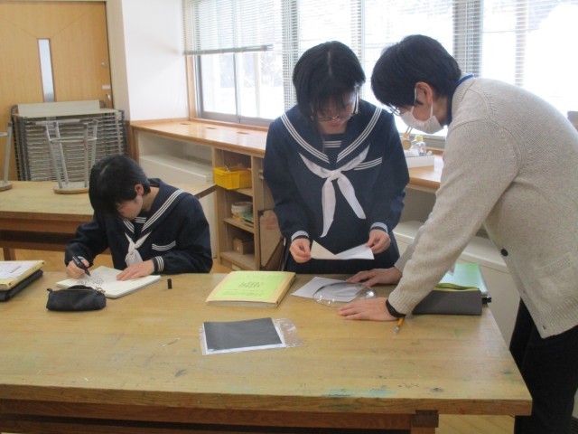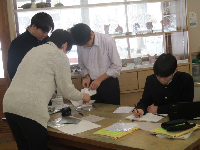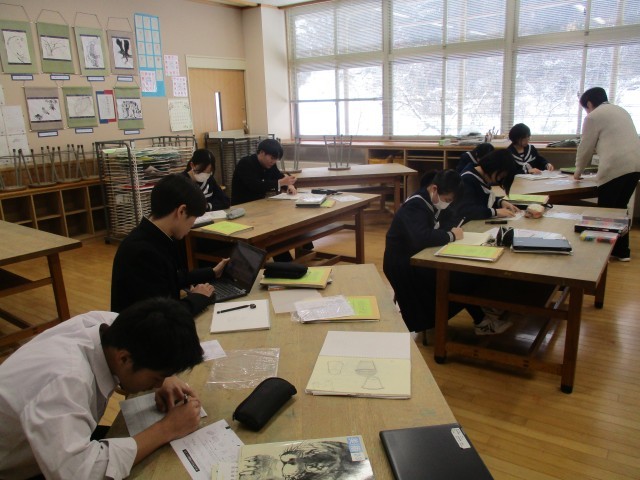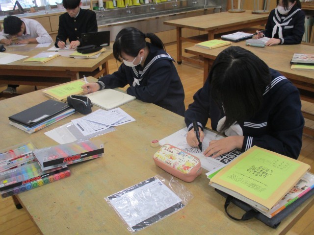 卒業記念品として「思い出の絵皿」の制作に取り組んでいます。下絵が完成し、トレーシングペーパーに転写しました。完成までの見通しをもって、集中して取り組みました。