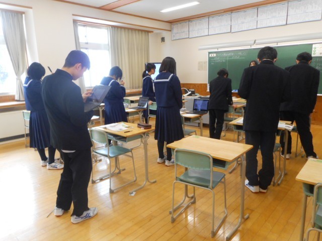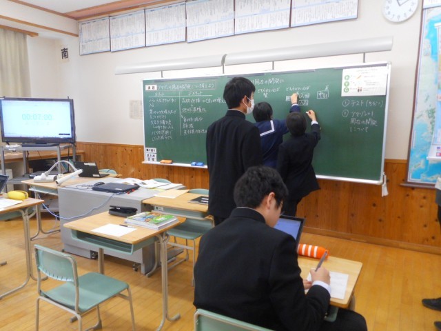 授業開始時に、世界の国々の地名について、小テストに取り組みました。本日の学習課題は、「アマゾン周辺の開発について、考えてみよう」です。課題について、メリットとデメリットを発表後、着席します。全員の意見を聞き終えた後、開発について、理由を添え賛成、反対の意思表示をします。