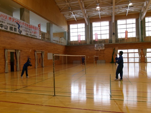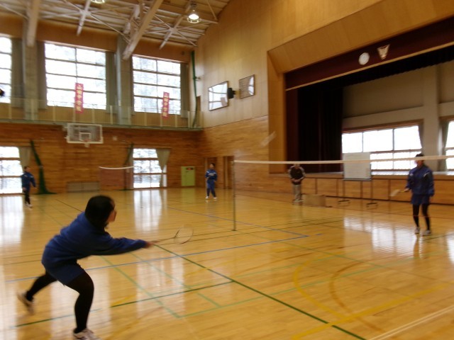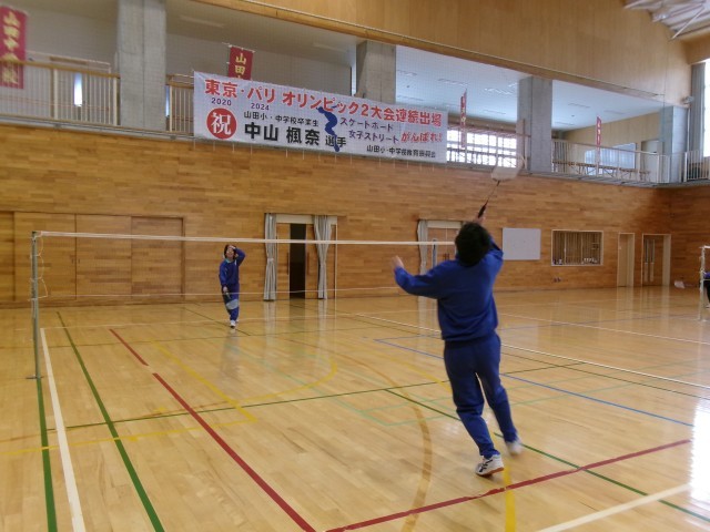 バドミントンをしました。体育館に元気いっぱいのかけ声が響き渡っていました。