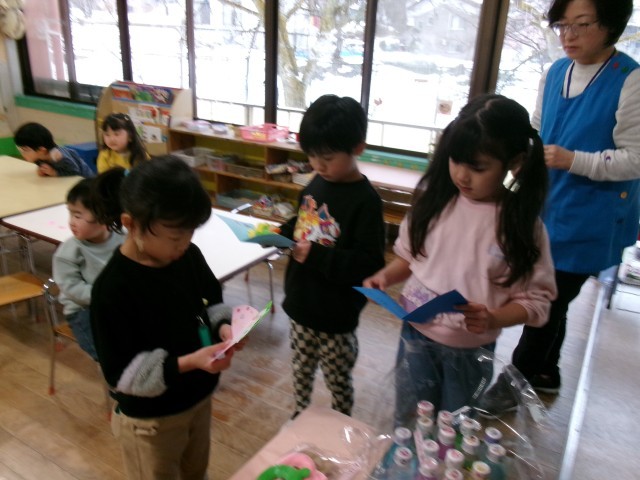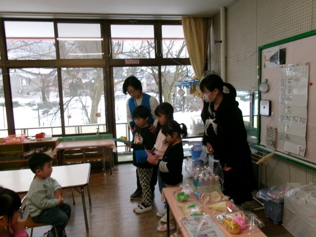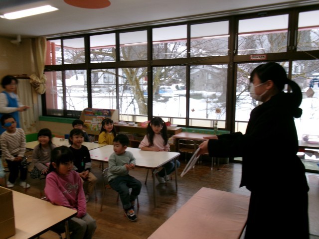 園児たちは、生徒の説明を食い入るように聞いていました。最後には、しっかりとお礼の言葉もいただきました。みんなで楽しく遊んでくれることを心から願っています。