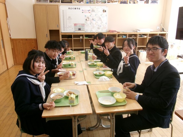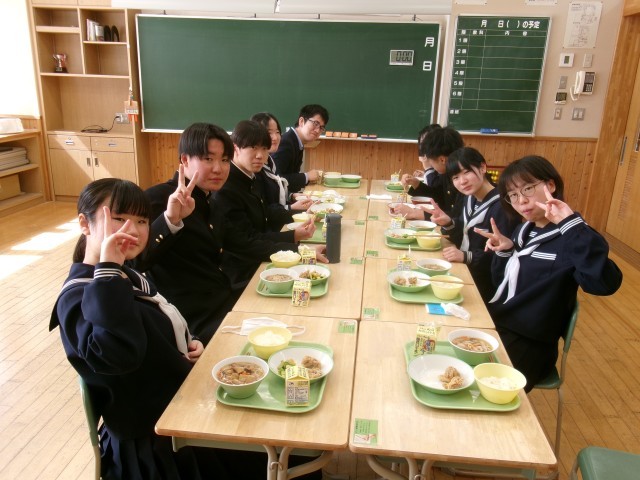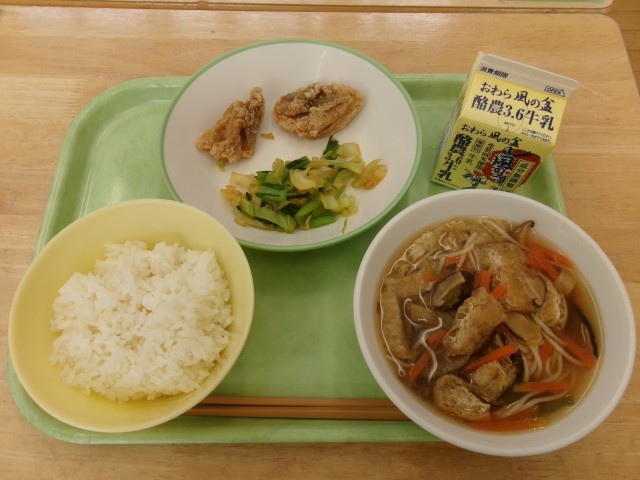 3年生は、今日が最後の給食となりました。今日の献立は、ご飯、牛乳、鶏肉の唐揚げ、おひたし、にゅうめんでした。給食もこれで最後だと思うと、寂しい気持ちでいっぱいの3年生たちでしたが、大好きな唐揚げには大喜びでした。