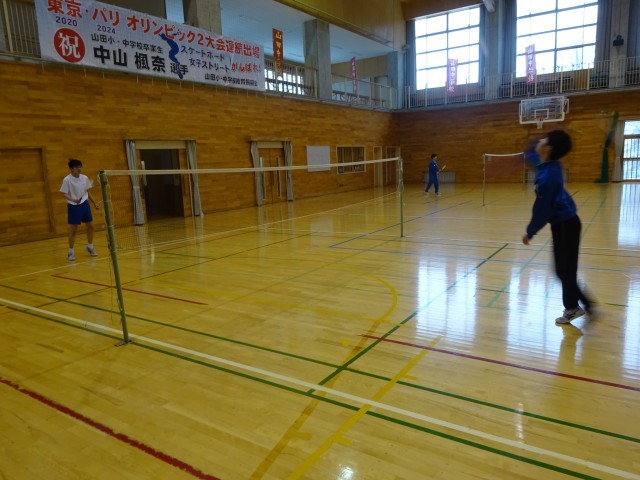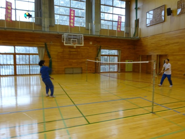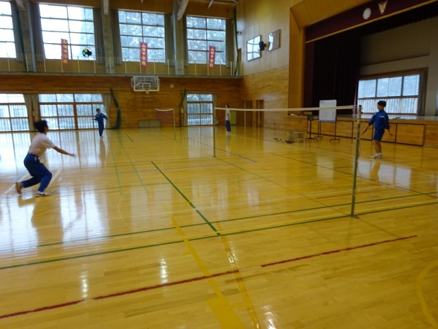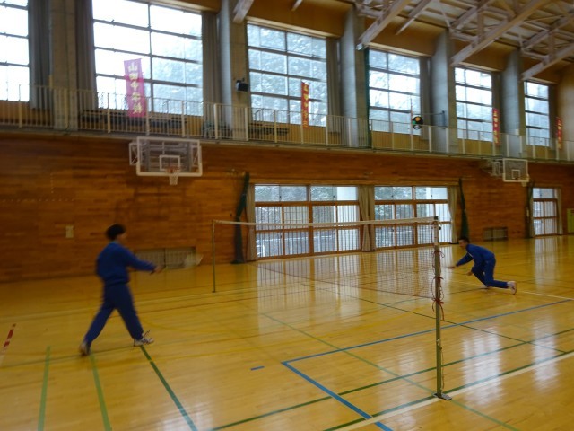 雪の寒さに負けず、2年生は元気にバドミントンを楽しんでいます。