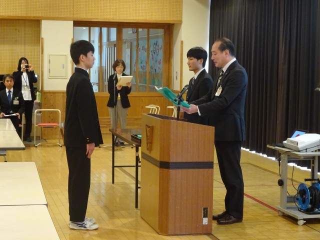 修了証授与では、各学年の代表の生徒が修了証を受け取りました。