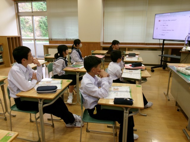 1年生は、英語の授業で元気よく音読練習をしていました。