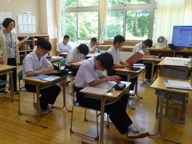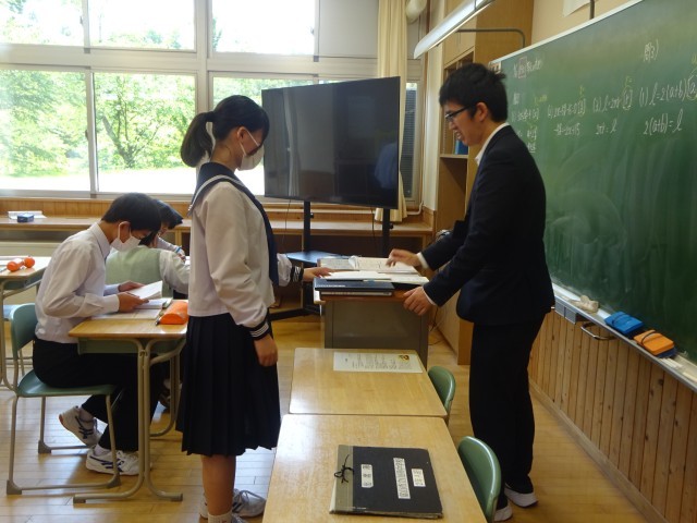 各学年の授業中の様子です。1年生は英語、2年生は数学、3年生は英語の授業でした。先生に質問したり、英文を音読したりするなど意欲的に取り組んでいました。