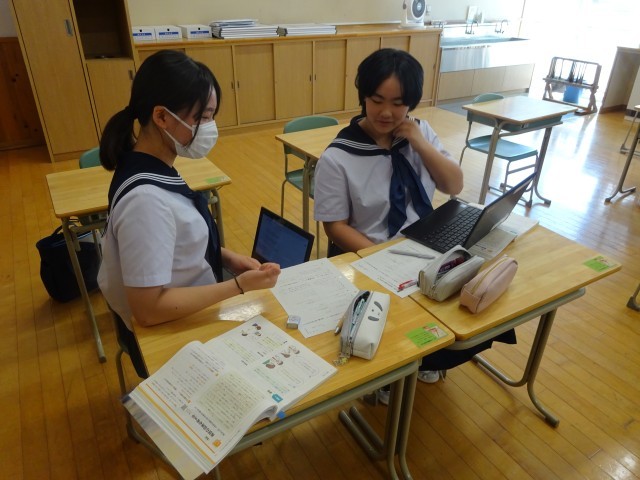 敬語の学習を行いました。2年生は6月末から5日間、「社会に学ぶ『14歳の挑戦』」で各事業所に分かれて職業体験を行います。お世話になる方に丁寧な言葉が使えるよう、どのように使うのか調べたり、実際に会話したりしながら理解を深めました。