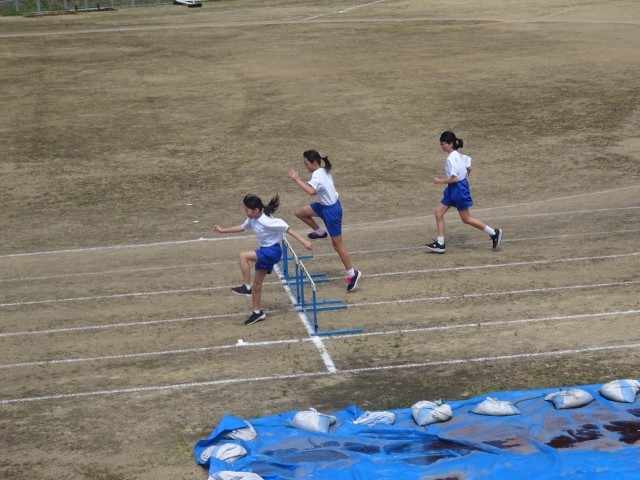 ハードル走に取り組みました。確実にハードルを飛び越えることを目標に、繰り返し練習しました。