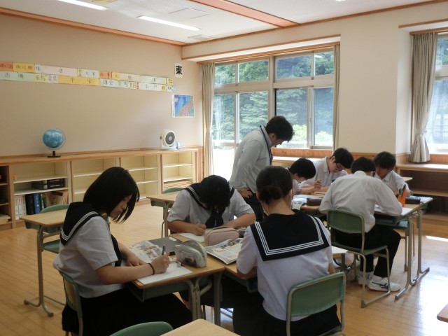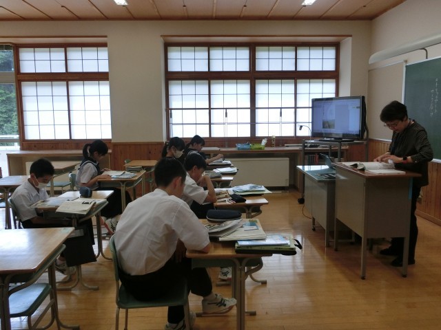 1限の授業の様子です。1年生は国語、2年生は社会、3年生は英語の授業に真剣に取り組んでいました。