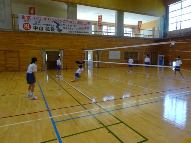 先日の大会で3年生が引退し、2年生も今日から「社会に学ぶ『14歳の挑戦』」が始まったので、この1週間は1年生のみで部活動を行います。今日はテキパキとネットを張り、サーブ練習や、3対3でボールをつなぐ練習等に取り組みました。