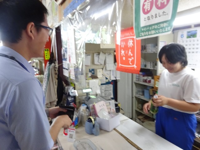 吉田商店では2人の生徒が活動しています。店内の掃除や自販機の商品補充等、様々な活動に取り組みました。レジの業務にも慣れた様子で、担任の先生はスムーズに買い物をすることができました。
