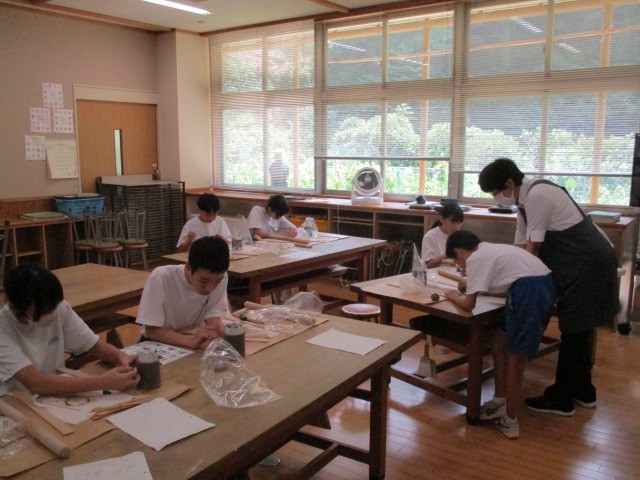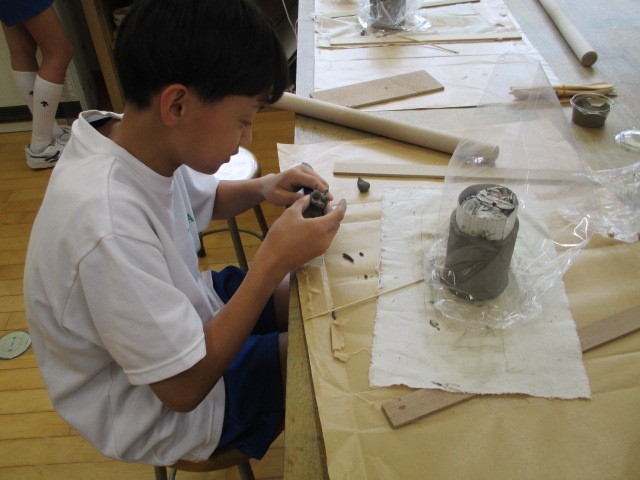 本日は、焼き物制作に取り組みました。粘土をこねるところから行い、成形後は、思い思いの形に加飾をしました。それぞれのアイディア溢れる作品に仕上げることができ、焼き上がりが楽しみです。