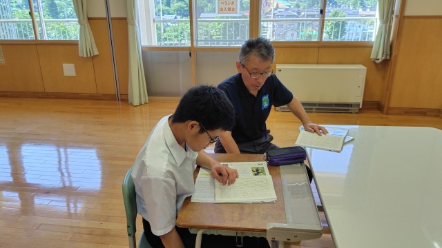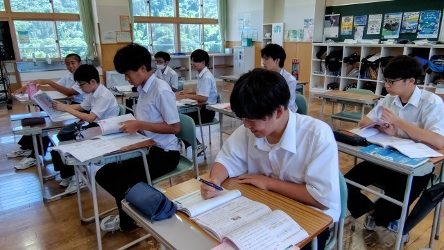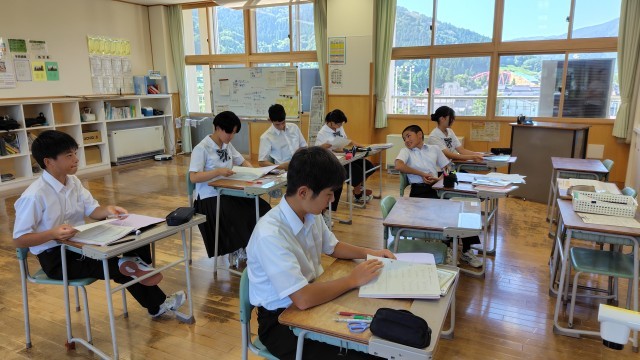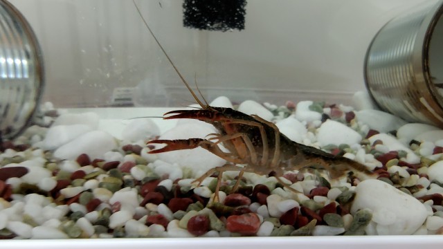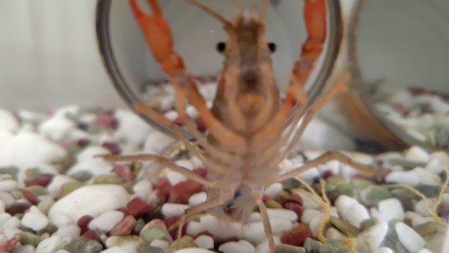 1年生は毛筆と硬筆、2年生は数学で1次関数の求め方、3年生は英語で課題にチャレンジ、碧空級は国語で教科書を音読していました。ザリガニさんは元気に泳ぎ、こちらに向かって勇ましくポーズを取っていました。