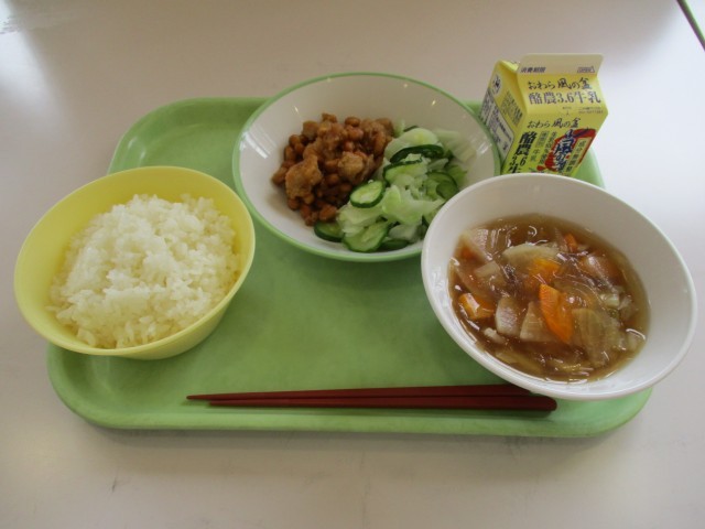 今日はきざみあえ、鶏肉と大豆の甘辛、つみれ汁です。きざみあえはしおしおしていて、お米に合い、鶏肉と大豆の甘辛は鶏肉がジューシー、大豆がカリカリ、そしてら甘辛で白米がすすみ、つみれ汁はつみれのモチモチ感と魚の旨味、春雨に染み込む出汁がマッチしていて落ち着かせてくれる味でした。