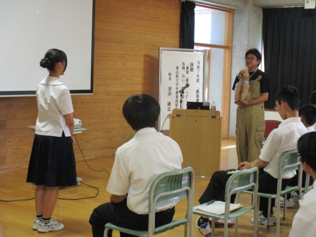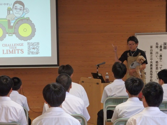 16日に富山県立中央農業高等学校の室井康志校長先生をお招きし、農業講演会を行いました。