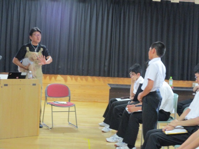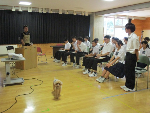 演題は「農業って・・・きつい、危険、汚い、格好悪い!?」で、1時間講演いただきました。学校で飼っているトイプードルも一緒に来て、講演中歩き回っていました。可愛かったです!