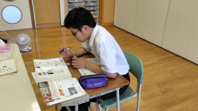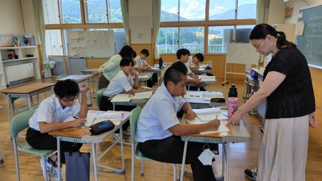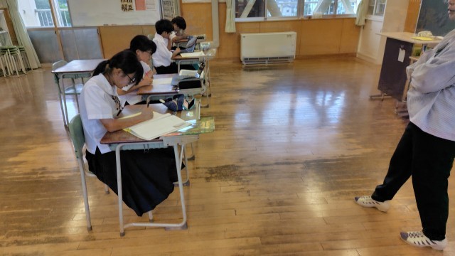 1年生は美術で感じの漢字の作品作り、2年生は保健体育で明日の合同体育に向けてのラリーについて、3年生は数学で2次方程式の求め方、できたできたと喜んでいました。ここから復習をするとさらに定着しますのでご家庭でも復習をお願いします!碧空級は社会で平和主義について、ザリガニさんは元気でした。