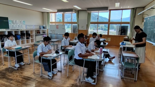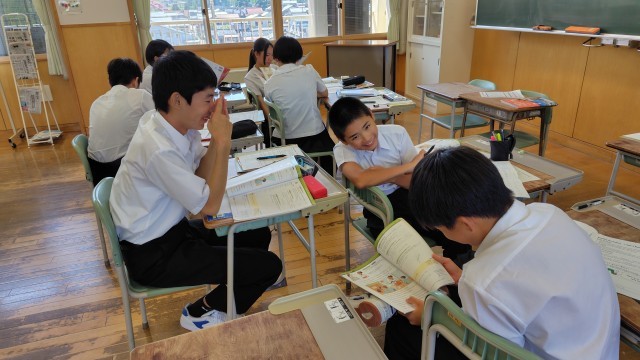 1年生は理科で密度、2年生は英語でUNIT3の文を読み合っていました、3年生は数学で二次方程式を求める、碧空級は理科でスライドを作ってました。