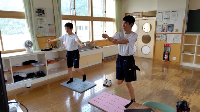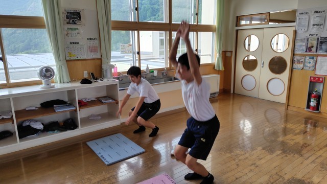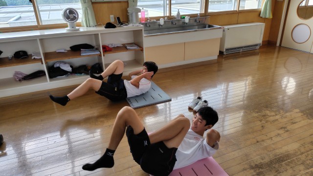 野球部は、熱中症アラート発令中のため、室内でトレーニングをしていました。簡単にできる筋トレからかなりきついものまでチャレンジです!!