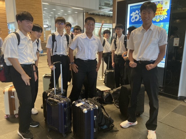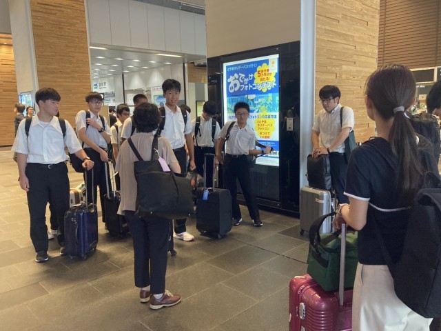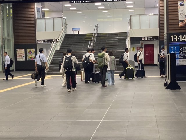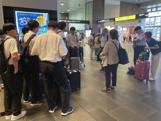 楡原中学校3年生、集合場所である富山駅までそれぞれの保護者に送迎してもらい無事集合完了。