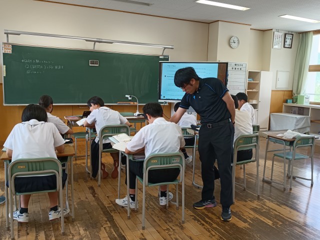9月9日(火)本日の授業の様子 公開日 2025/09/09 更新日 2025/09/09 日々の活動から 1年生は数学の授業で、振り返りテストを再度身に付けるための小テストを実施していました。2年生は英語の授業で疑問詞について学んでいました。3年生は美術で風景画を水彩絵の具を使いそれぞれの風景を描いていました。 +1