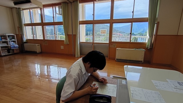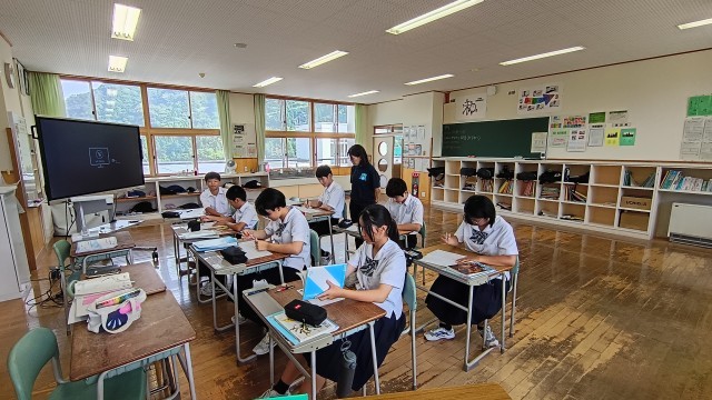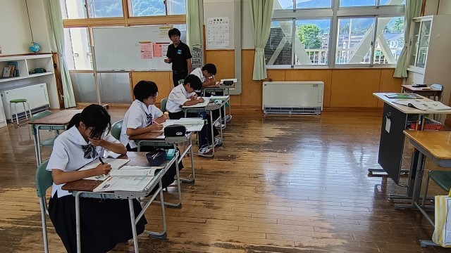 2年生は国語で小テストの解説と文章を読んで問題に答えていました。解説を聞きながら直しを行っていました。