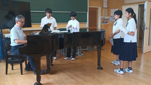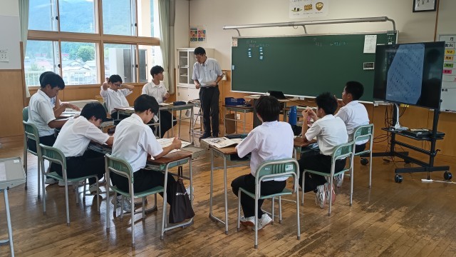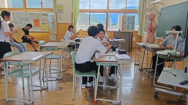 9月20日(土)公開授業 公開日 2025/09/20 更新日 2025/09/20 日々の活動から 本日は楡原中学校の公開授業です。1年生は音楽、「赤とんぼ」を歌おうと題し耳を澄まし、声高らかに歌っていました。2年生は理科、「動物のからだのつくりとかたらき」について、理解を深めて物を食べてから消化するまでのそれぞれの器官の働きについて相手をつくり確認しあっていました。3年生は社会、「日本国憲法を知ろう」と憲法の基本「何人も・・・」から理解を深める探求をしていました。 +1