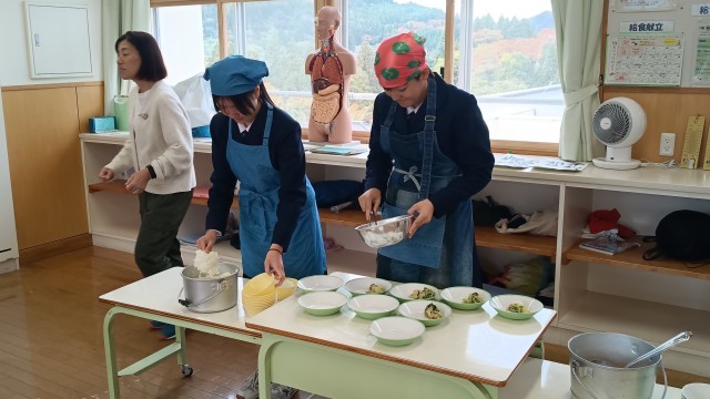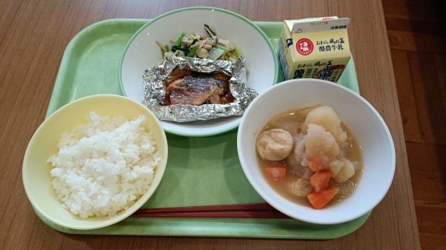 えのきのごま和え、サバの銀紙焼き、関東炊き
