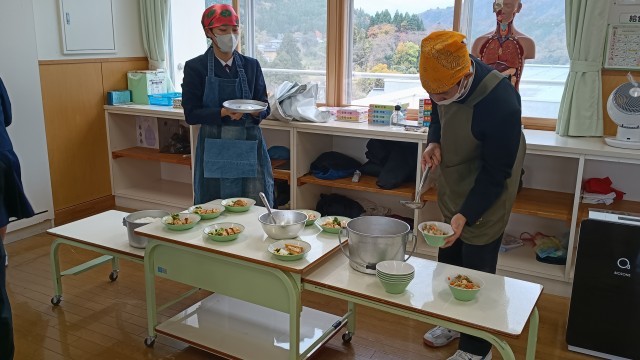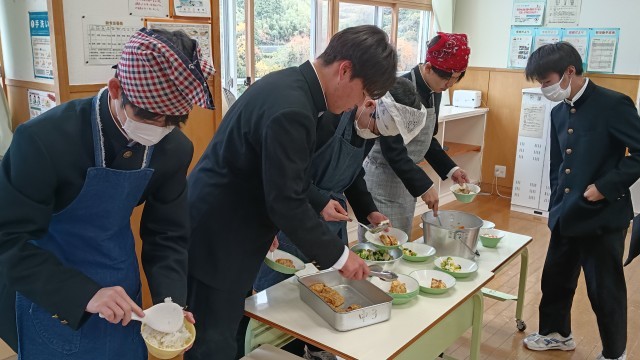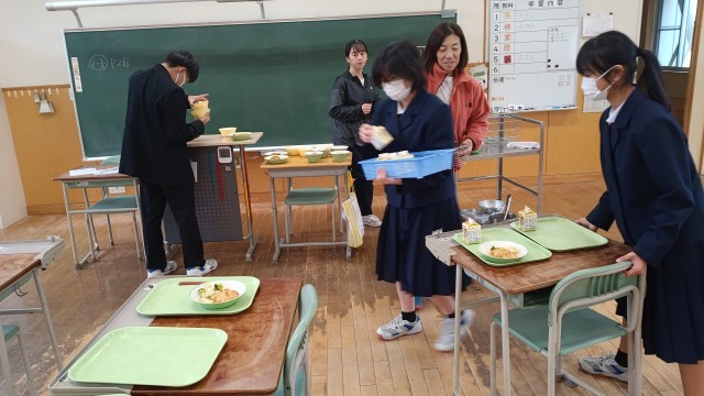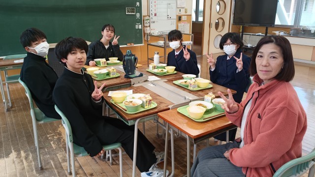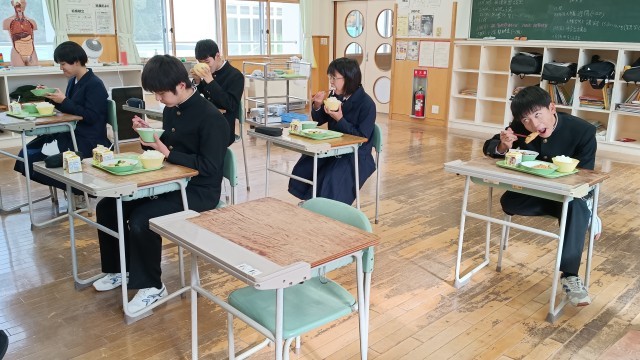 3年生は家庭科調理の後でもしっかりと給食を食べていました。