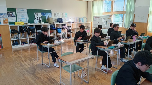 今日は第43回全国中学生人権作文コンテスト受賞作品の「色」を黙読し、それぞれ見て読んで感じたことを書いていました。