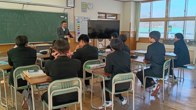 3年生は理科、授業の前に新配置の先生から自己紹介、生徒も自己紹介をしていました。