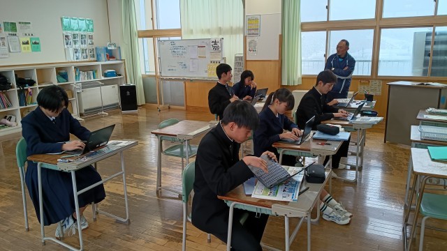 2年生は保健で傷害の手当方法について、スライドにまとめたり、救命法の動画を視聴していました。
