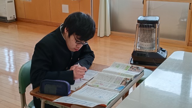 3年生は数学で計算問題にチャレンジ、わからないところは先生や生徒同士で聞き合って学んでいました。