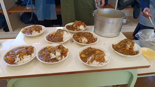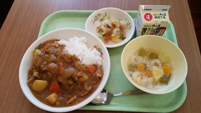 久々のカレーライス、福神和え、フルーツゼリーミックス