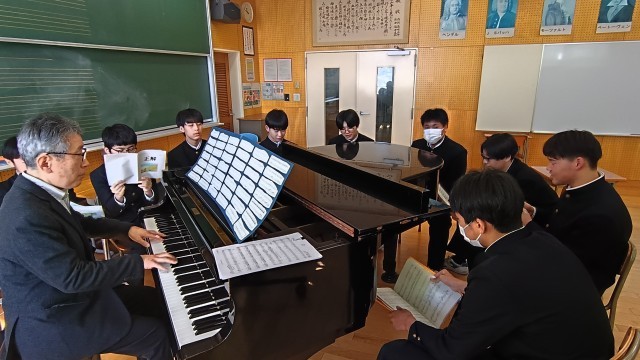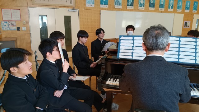 3年生は音楽、合唱曲「正解」の合唱練習中でした。