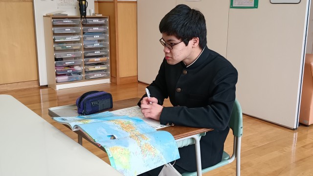 2年生は数学、図形の作図から辺の長さ、角度など求めるなどを学んでました。