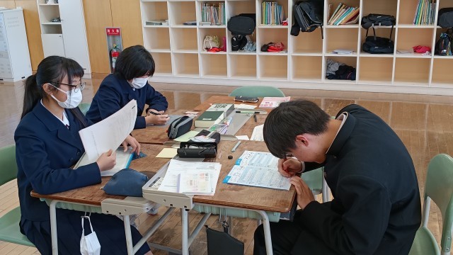 1年生は学活で春休みの課題についてでした。
