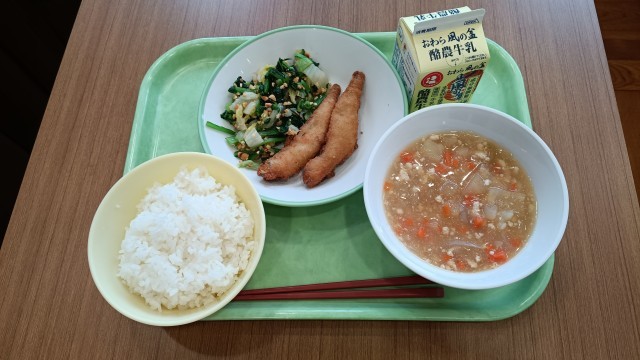 いり大豆和え、ししゃもフライ、じゃが芋のそぼろ煮