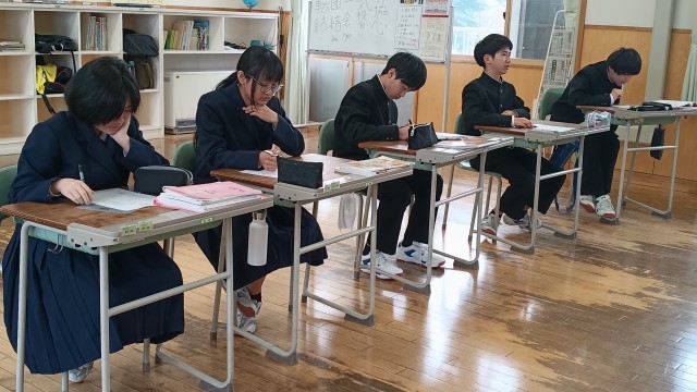 3年生は国語、井上ひさしの小説「握手」を読んで新聞を作り、発表をしようとの設題に取組みはじめて