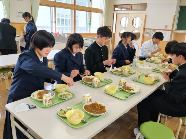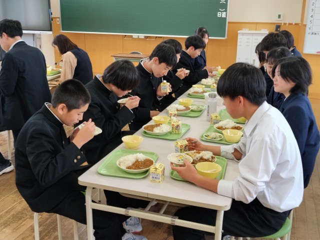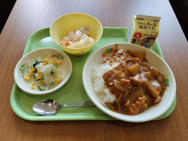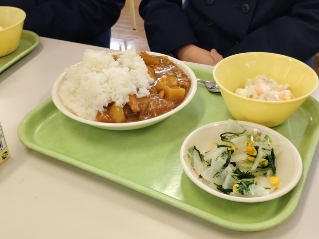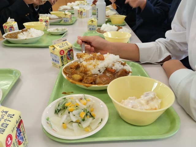今日、久々のカレーライス育ち盛りの生徒は超大盛りで食べていました。
