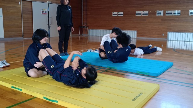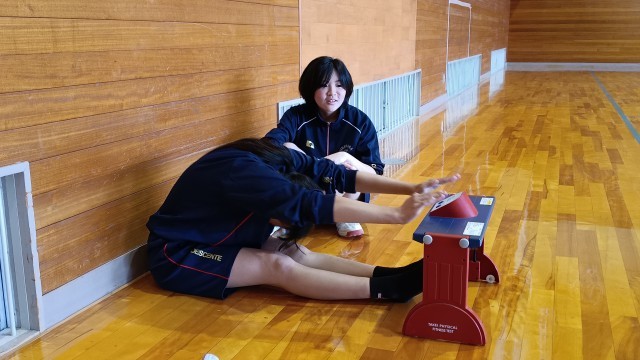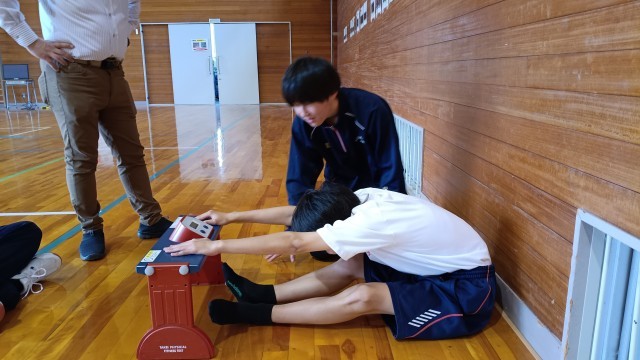 1.2年生は体育、スポーツプレテストを実施どの生徒も昨年の記録より伸びてます。