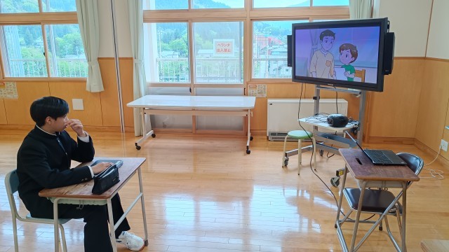 1年生は英語で自分の名前や好きなものを伝えようでした。