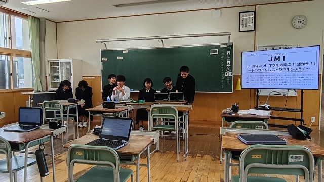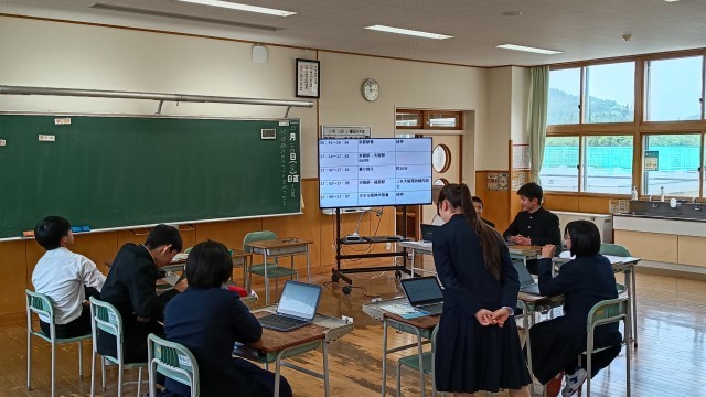 3年生は保健体育で、シャトルラン、100回目指してファイト!明日の学習参観の発表確認もしていました。