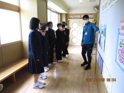 1年生は学校内の各教室を訪れて説明を受けました。