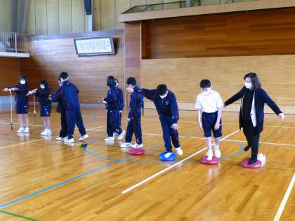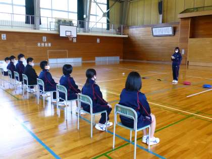 部活動紹介 公開日 2021/04/09 更新日 2021/04/09 日々の活動から 4月9日(金) 生徒会執行部が部活動紹介を企画してくれました。 始めの言葉の後で4つの部活動が順番に紹介しました。 まずは陸上競技部からでした。 新入生の体験コーナーもありました。 土井教頭も飛び入りで参加していました。