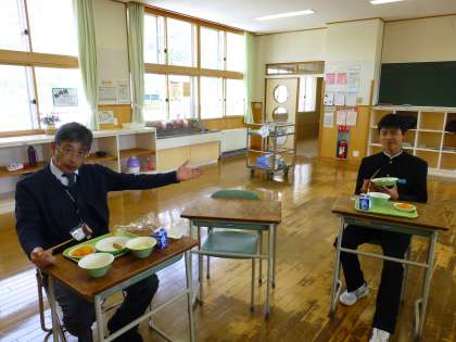 4月12日(月) 2年生の給食風景です。